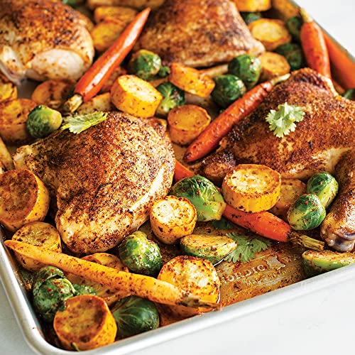 Extra-large capacity pan holds more food than a standard sheet, allowing you to bake more in each batch. Foods bake and brown evenly due to aluminum’s superior heat conductivity.