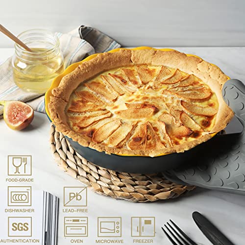 Large Size for Your Family – The 10 inch pie pan is a versatile classic product, suitable for desssert pies(apple pie, pumpkin pie), quiche, pot pies, casseroles and etc. Especially suitable as a holiday pie pan. Deeper design prevents spills, larger capacity allows more happiness to share with your beloved.