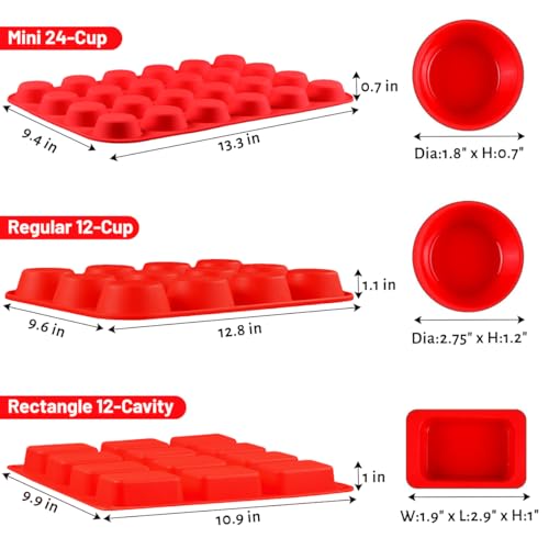CAKETIME Silicone Muffin Pan- 24 Cups Mini Muffin Pan, Regular 12 Cups Cupcake Pan, 12 Cups Mini Loaf Pan