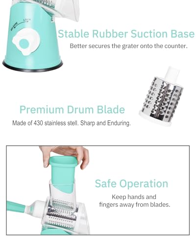 X Home Rotary Cheese Grater, Manual Cheese Shredder with 3 Interchangeable Blades, Mandoline Vegetables Slicer with Strong Suction Base, Mother’s Day Gift, Easy to Use and Clean, Blue