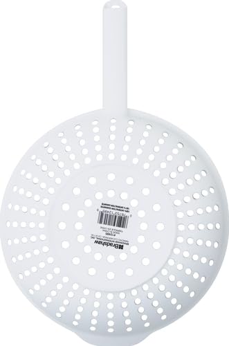CONVENIENT HANDLE: Sturdy, longer-length handle makes it easier to hold and keeps hands dry while in use, and it also allows for one-handed use without needing to set the colander in the sink