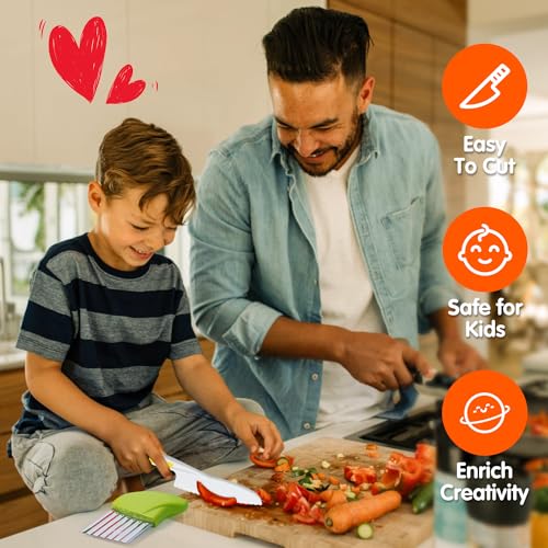 SUPER EASY TO USE AND KIDS LOVE THEM – Featuring a kid-friendly design and long-lasting material, our kids knife set are not super sharp but are easy to help toddlers/kids cut simple things such as cheese and other things. Very useful and educational.