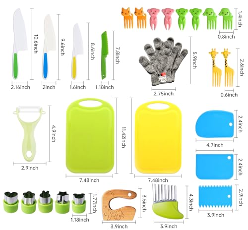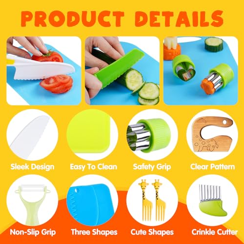 Kids Safe Knife Set for Toddlers Real Cooking – Toddler Knives Sets Kitchen Tools with Gloves Cutting Board Fruit Vegetable Crinkle Cutters