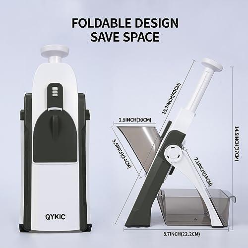 【Safe Vegetable Slicer】: Our 5 in 1 large capacity mandoline slicer lets you slice, strip, dice, and julienne your vegetables safely in seconds,40+ different cuts do not need to change blades, this kitchen chopping artifact is perfect for cut potatoes, tomatoes, cucumbers, carrots and more.