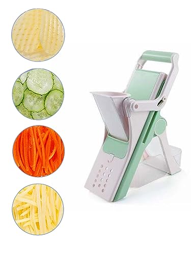 The mandoline slicer is convenience and easy to use.safe and adjustable slicer for kitchen, changing the blades and pressing the handle cut various vegetables, fruits and meat.