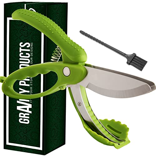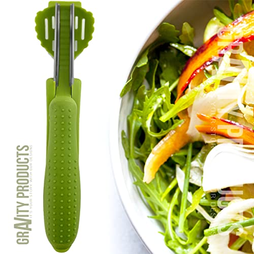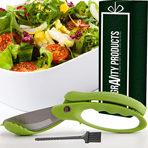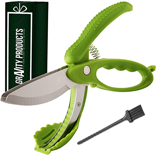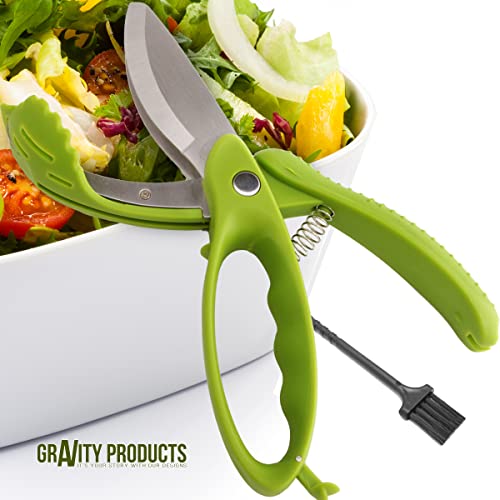 Salad Chopper Scissors, Stainless Steel Vegetable Slicer and Fruit Cutter, Salad Chopper, Heavy Duty Kitchen Salad Scissors, Multifunction Double Blade Salad Cutting Tool (Solid Green)