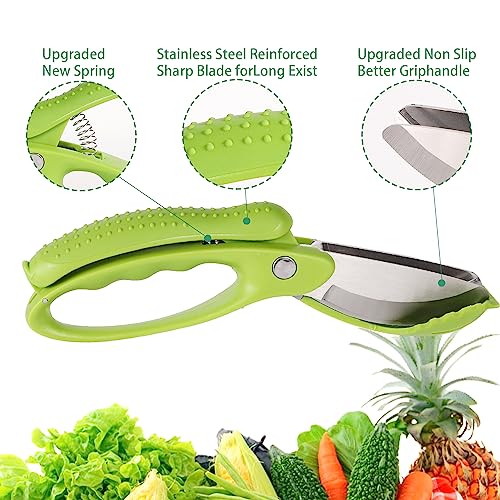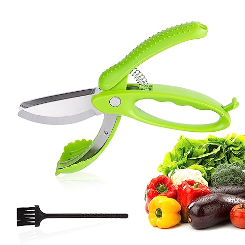 Salad Scissors, Salad Chopper with Cleaning Brush Stainless Steel Toss and Chop Salad Tong Lettuce Scissors for Salad Scissors Heavy Duty Kitchen Salad Scissors for Kitchen Home Cutting Tool (Green)