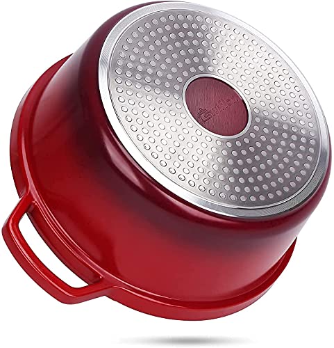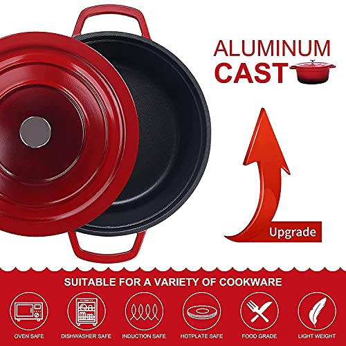 Dutch Oven Pot with Lid 6.8-QT Cast Aluminum Nonstick Casserole, Lightweight Cookware Braiser Pot Suitable for Meats, Soups, Bread Baking in Oven, Red