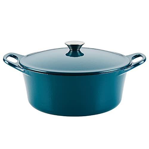 Rachael Ray Enameled Cast Iron Dutch Oven/Casserole Pot with Lid, 5 Quart, Teal