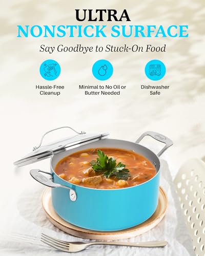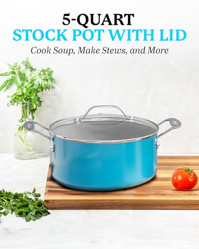 Gotham Steel Aqua Blue Nonstick 5 Quart Pot, Multipurpose Nonstick Stock Pot, Pasta Pot, Oven Safe Cooking Pot with Glass Lid, Pot for Stew, Sauce & Reheat Food, Dishwasher Safe, PFOA Free