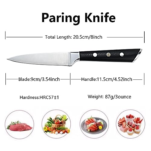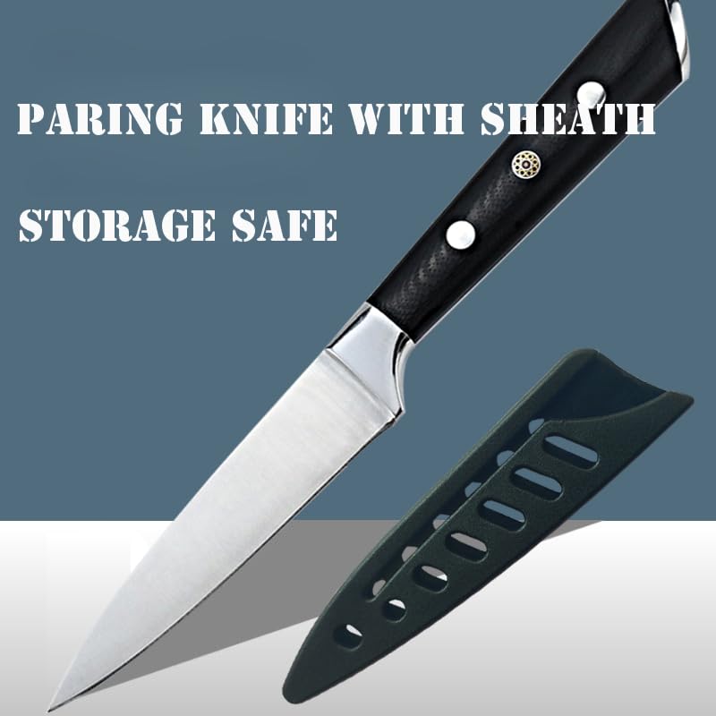 Paring Knife 3.5 inch Small Kitchen Knife Manual Sharpened 5Cr15Mov Stainless Steel Fruit Knife Full Tang with 3 Rivets in Ergonomic Pakkawood Handle