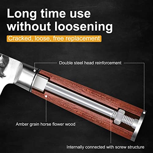 ✔【Natural Paintless And Odorless Handle】Made of Brazilian Rosewood, with crystal clear amber wood grain, like amber marble tiles in five-star hotels. Through the complicated screw process, the steel heads on both sides of the handle are connected, which is high-grade and will not loosen for a long time. If loose or cracked, 1 year refund.