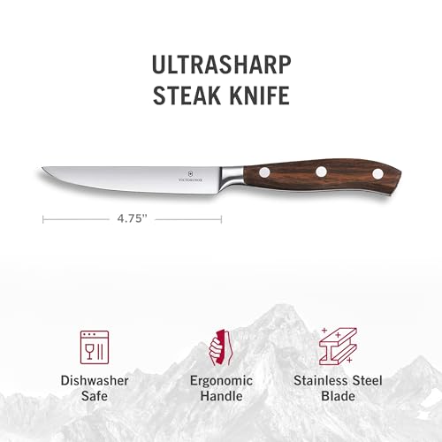 Victorinox Grand Maitre Steak Knife – Premium Meat Knife with Ergonomic Handle – Modern Cooking Knife – Exceptional Kitchen Accessory – Wood Handle, Straight Edge, 5″