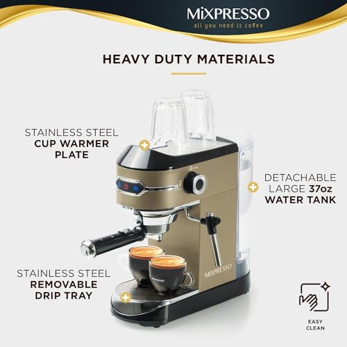 Mixpresso Professional Espresso Machine for Home 15 Bar with Milk Frother Steam Wand, Espresso Maker with Double-Cup Splitter 1450w Fast Heating, Cappuccino and Latte machine 37Oz Water Tank