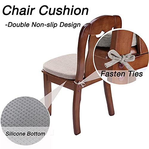 Chair Cushion with Ties for Dining Chairs – Memory Foam Non Slip Kitchen Chair Pad and Dining Seat Cushion with Machine Washable Cover [16.5 x 16.2 Inches] – Dark Beige