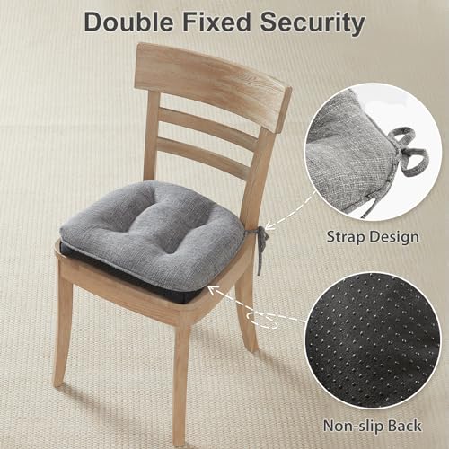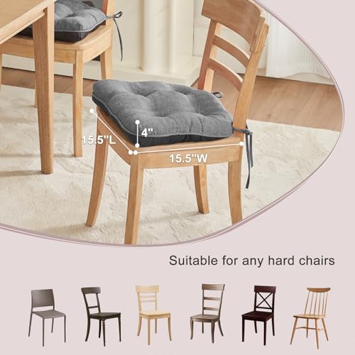 Chair Cushions for Dining Chairs Set of 4, Kitchen Chair Cushions with Non-Slip Backing, Memory Foam Seat Cushions for Kitchen Chairs, Indoor Chair Pads with Ties, 15.5 x 15.5X 4 Dark Grey