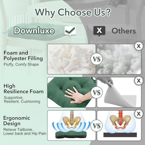 Be the first to review “downluxe Indoor Chair Cushions for Dining Chairs, Tufted Overstuffed Textured Memory Foam Kitchen Chair Pads with Ties and Non-Slip Backing, 15.5″ x 15.5″ x 4″, Dark Green, 4 Pack”
