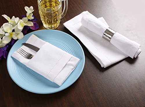 Cloth Dinner Napkins with Hemstitched Detailing & Mitered Corners Set of 4 (18×18 Inches) White – Cotton Reusable Dinner Napkins – Perfect for Weddings & Everyday Use