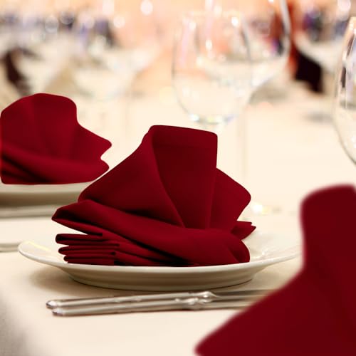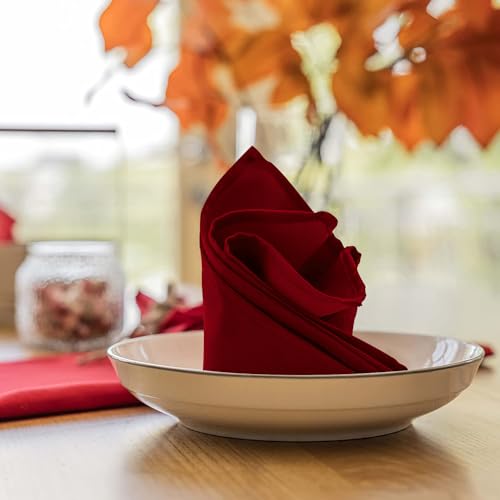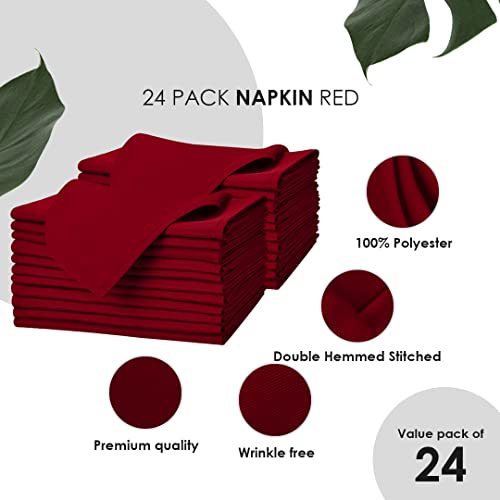 Cloth Napkins Pack of 24 – Red Napkins 17×17 Inches Linen Napkins – 100% Polyester Dinner Napkins Durable, Soft and Absorbent with Hemmed Edges Ideal for Parties and Wedding