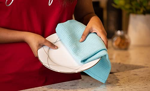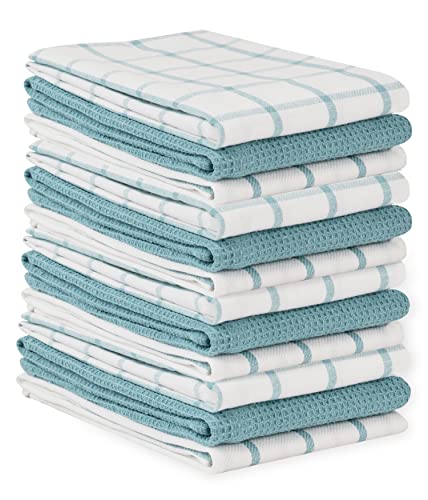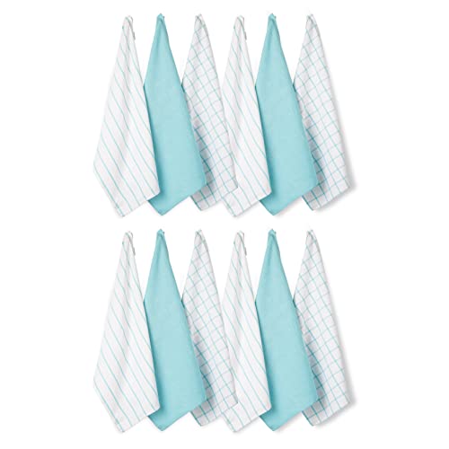 Kitchen Towels and Dishcloths Set – Pack of 12 Cotton Dish Cloths, 18”x 28”, Soft Hand Towels for Kitchen, Absorbent Tea Towels, Premium Kitchen Dish Towels, Quick Drying Cleaning Towels – Aqua Towels