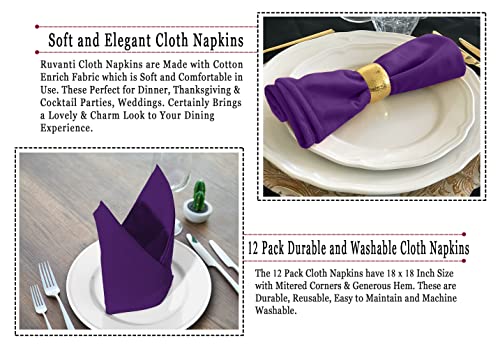 Ruvanti Cloth Napkins Set of 12, 18×18 Inches Napkins Cloth Washable, Soft, Durable, Absorbent, Cotton Blend. Table Dinner Napkins Cloth for Hotel, Lunch, Restaurant, Wedding Events, Parties – Purple