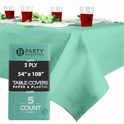 PARTY BARGAINS 5 Disposable Table Covers – 54″ X 54″ Mint Green Table Cover, 3 Ply Paper & Plastic Tablecloth
