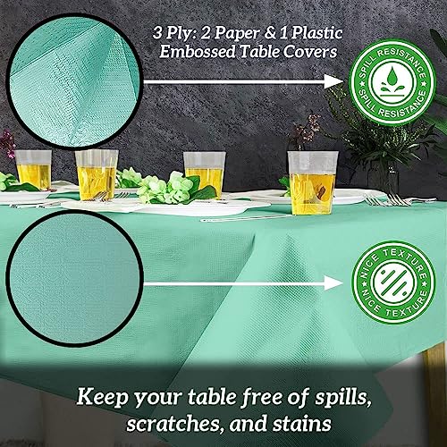 ✅ SUPERIOR TABLE PROTECTION: Unique design mint green table cloths with two-ply paper and one-ply plastic at the bottom layer to make them spill-proof and eliminate any risk of scratches or scraping.