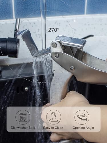 Ergonomic Excellence: Experience the convenience of an extra-wide handle and large opening and closing angles that make garlic pressing effortless. Plus, it’s a breeze to clean! The smooth stainless steel surface ensures easy maintenance, and it’s dishwasher-safe for your convenience.