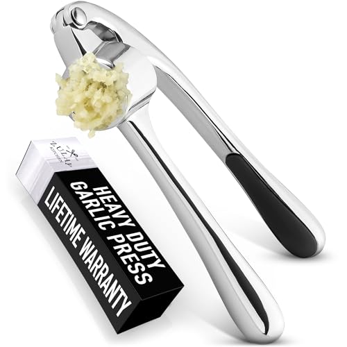 Zulay Kitchen Premium Garlic Press – Durable Garlic Masher with Soft, Easy to Squeeze Handle – Garlic Mincer Tool – Sturdy Easy to Clean Garlic Crusher (Chrome)